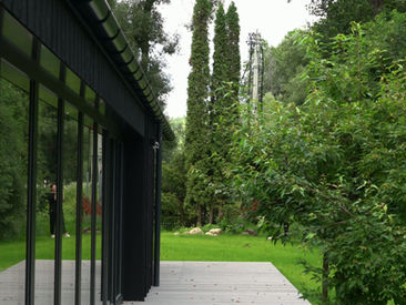 The house is located between two worlds: civilization and nature. Its location, close to the capital with a panoramic view through the windows to the river, combines the conveniences of the city with the beauty of the natural world.