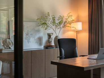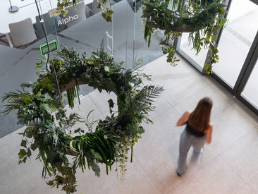 We subtly draped the premises in natural oak veneers, solid oak furniture, and earthy tones, which help focus and are soothing to the eyes. Glass partitions dominating the interior embody the values of the people working here — openness and collaboration, while the plentiful plants blend the inside with the outside.